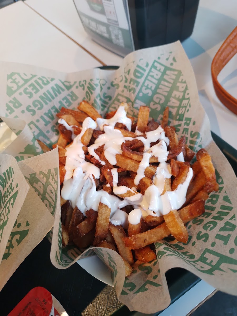 As a dedicated chicken wing restaurant, Wingstop serves a variety of flavors that will tantalize your taste buds. You can choose from bone-in or boneless wings, with the option to mix and match up to six flavors in a single order. Some of the crowd-favorites include the Mango Habanero, known for its fruity heat, and the Garlic Parmesan, rich and savory with a delightful aroma. If you’re looking for a crispy sidekick, their Buffalo Ranch Fries—fresh cut fries smothered in ranch and Original Hot sauce—are the perfect complement to your wing experience. And for something a bit more indulgent, try the Loaded Voodoo Fries, which come drizzled with cheese sauce and seasoned with signature Cajun spices.